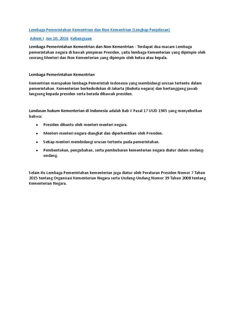 Lembaga Pemerintahan Kementrian Dan Non Kementrian Lengkap Penjelasan