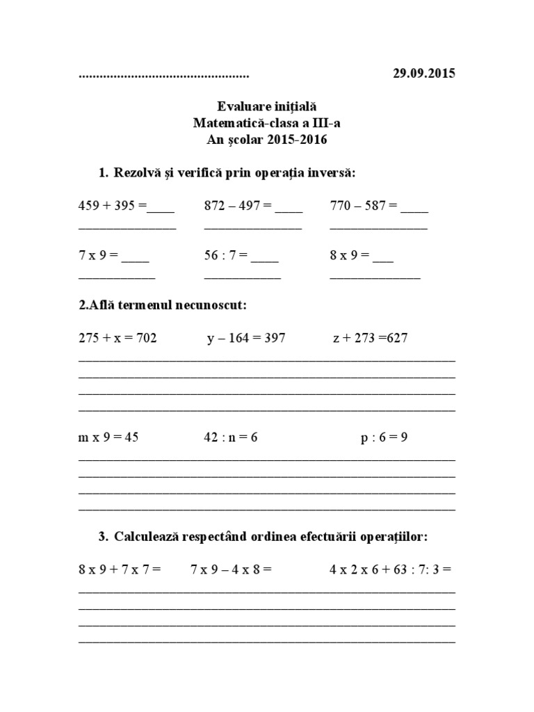 Exerciții De Matematică Află Termenul Necunoscut Suma