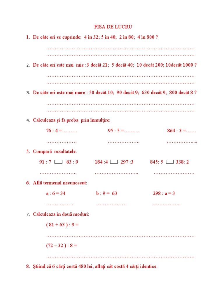 Fisa De Lucru Cu Impartiri