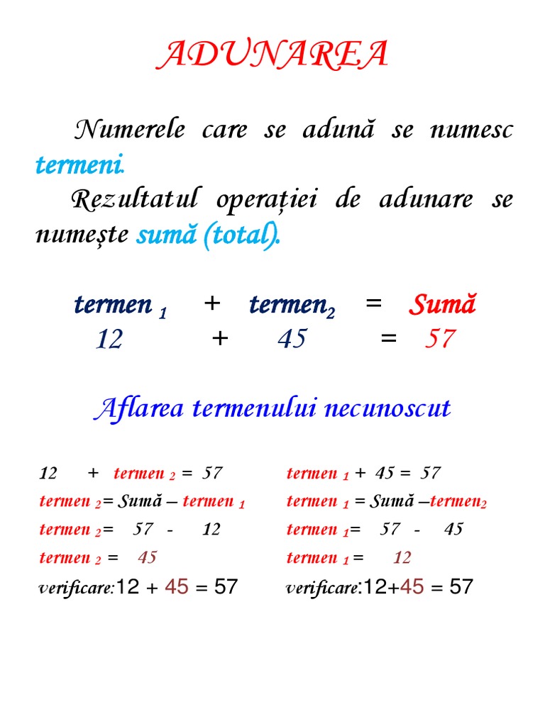 Aflarea Termenului Necunoscut La Adunare și Scădere Matematică