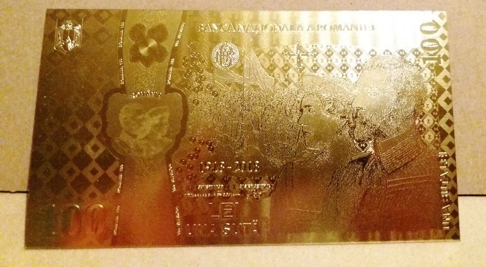 Bancnota 100 Lei Unire Centenar Aur 24k Gold Certificat 2018 29