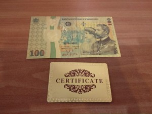 Bancnota 100 Lei Centenar Unire Aur 24k Certificat Colectie 2018