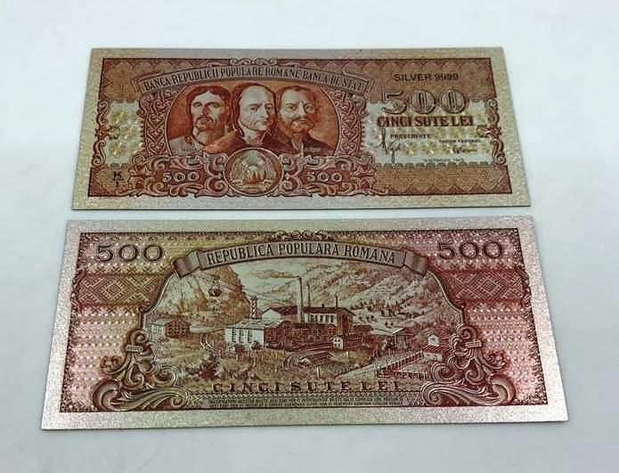 500 Lei 1949 Bancnota Polimer Plastic Placata Cu Argint 999