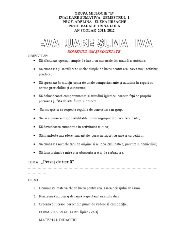Didactic Ro Raport De Evaluare Sumativa Grupa Mijlocie