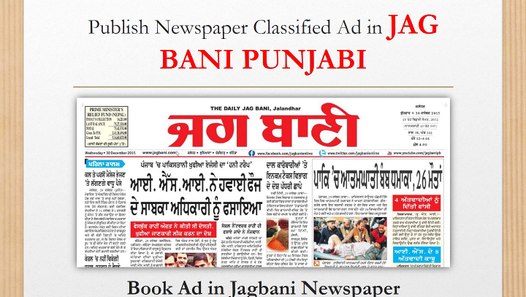 Ads In Jagbani Newspaper Jagbani Classified And Display