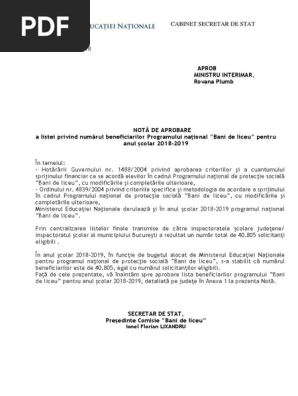 Nota Aprobare Lista Beneficiarii 2018 2019 Pdf