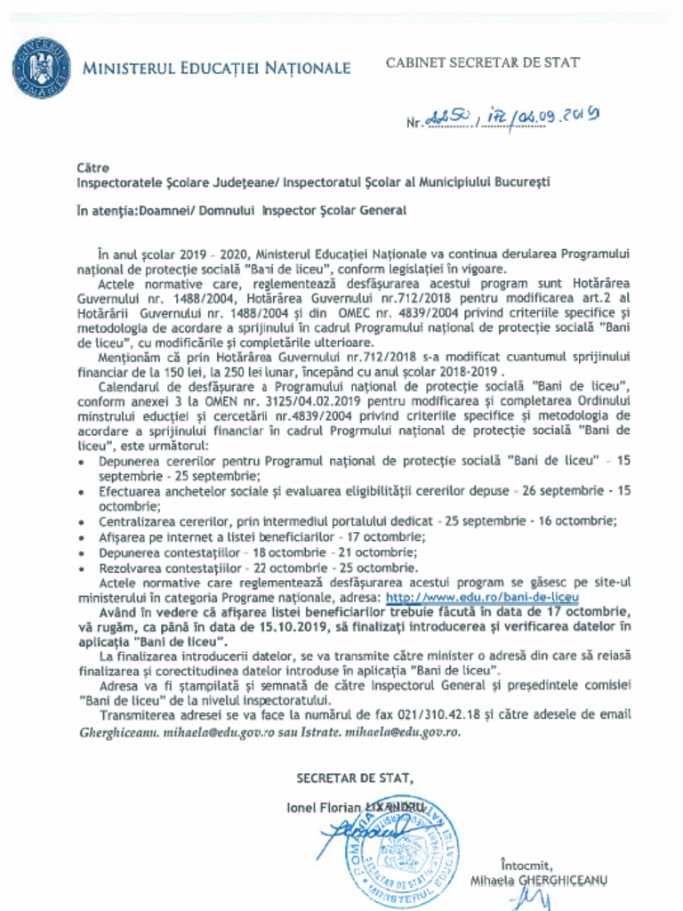 Adresa Bani De Liceu 2019 Pdf
