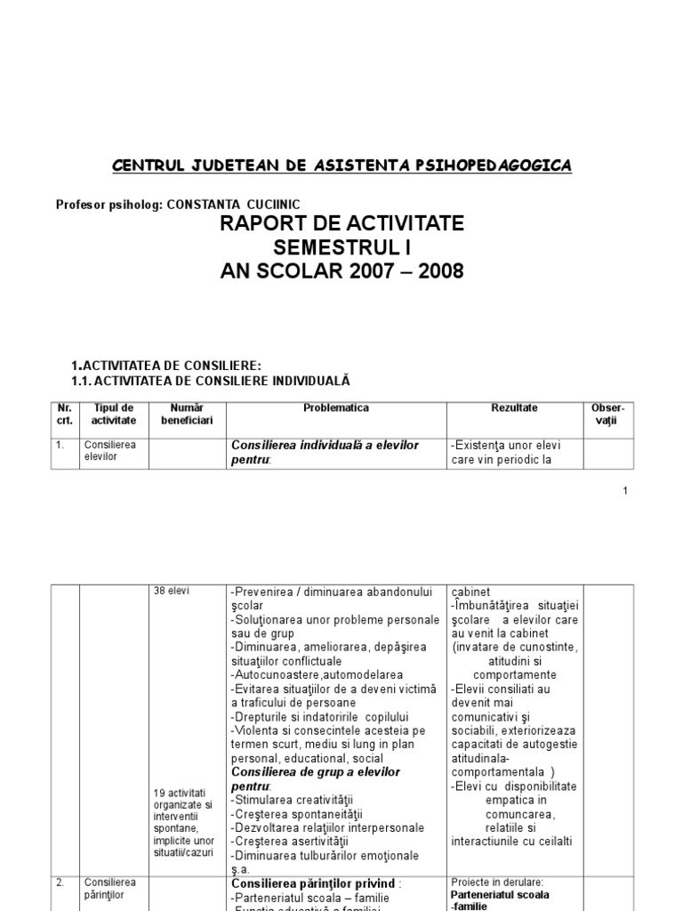 Raport De Activitate Consiliere Psihopedagogicac Cuciinic