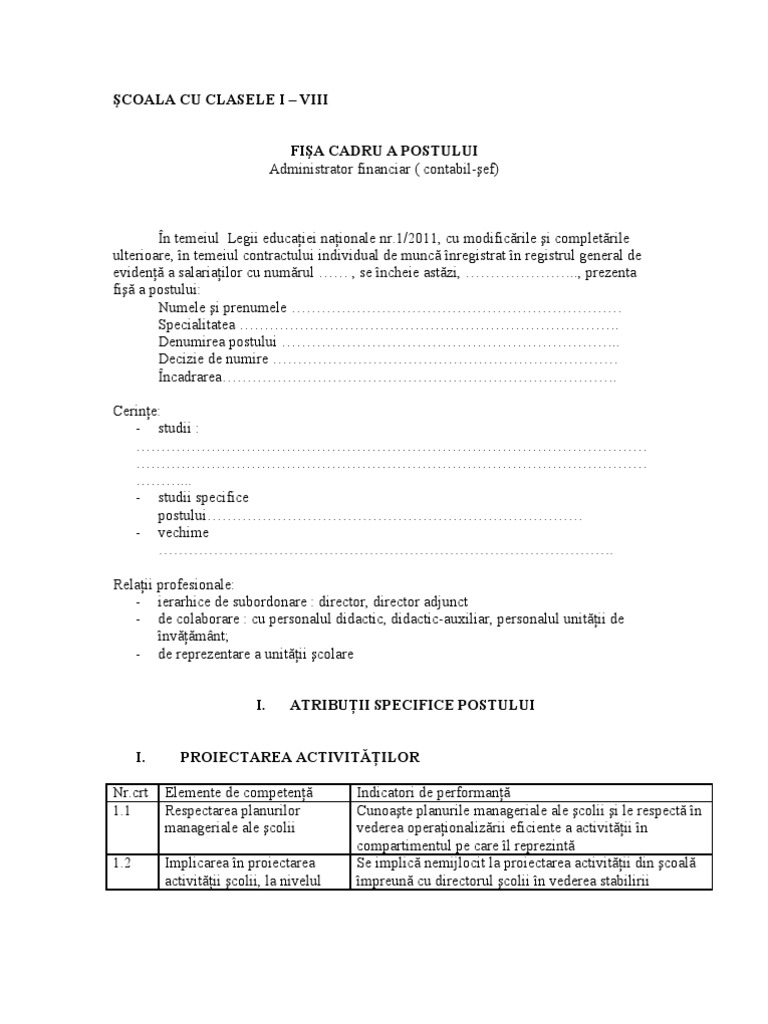 Model De Fisa De Post Pentru Contabil Sef 1 Doc