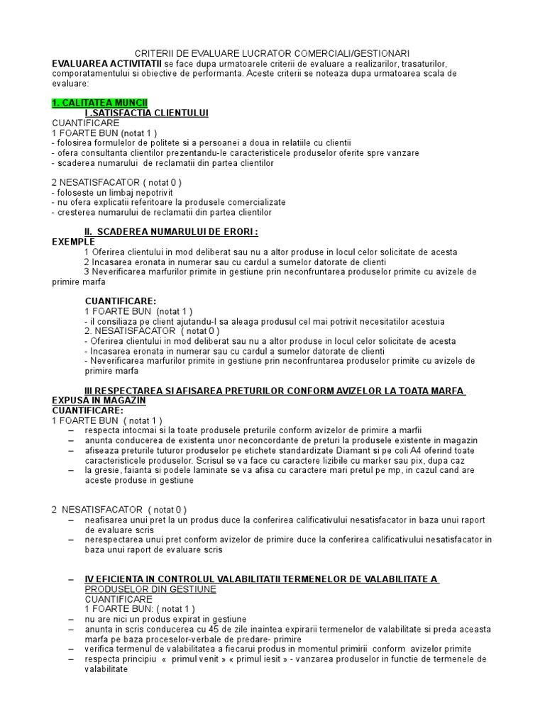 Criterii De Evaluare Lucrator Comercial Gestionari