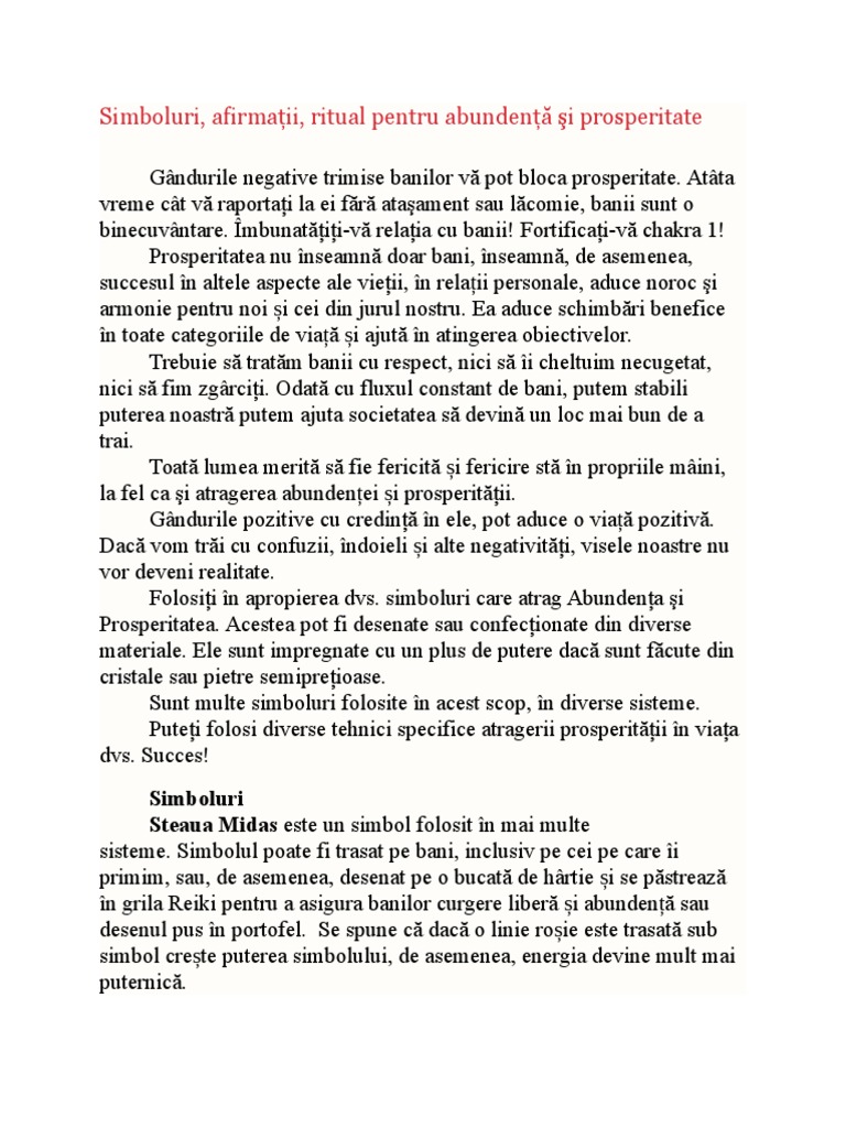 Simboluri Afirmaţii Ritual Pentru Abundenţă Si Prosperitate