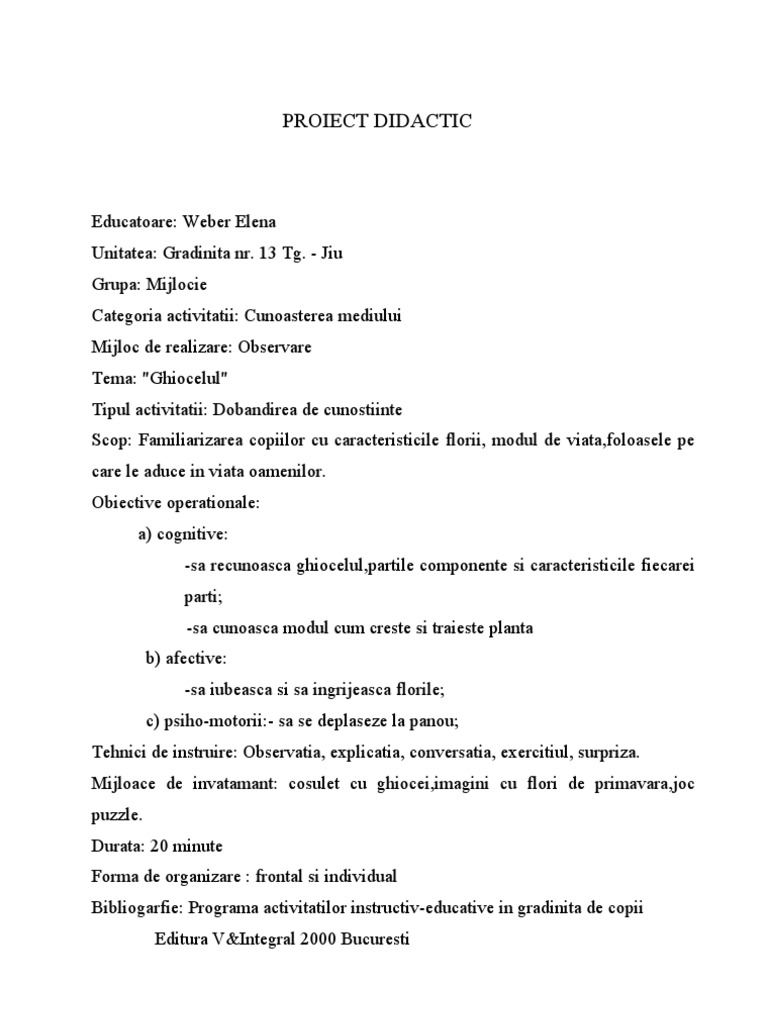 Doc Proiect De Activitate Dana Lespede Academia Edu