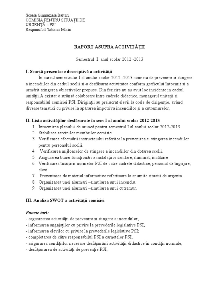 Raport De Activitate Psi 2013 Pdf Document