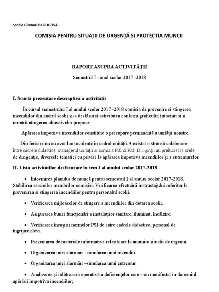 Raport Activitate Sem I 2017 2018 By Curcan Roxana Issuu