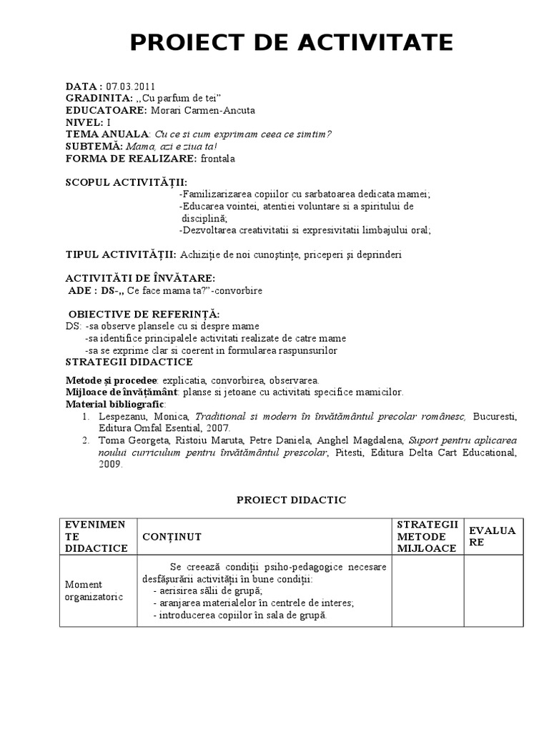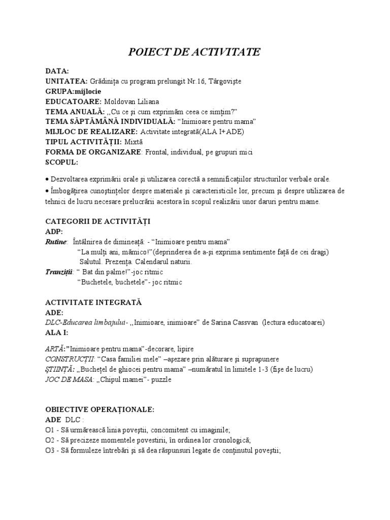 Adina Lupoae Proiect De Activitate Integrata Mama Draga Te Iubesc