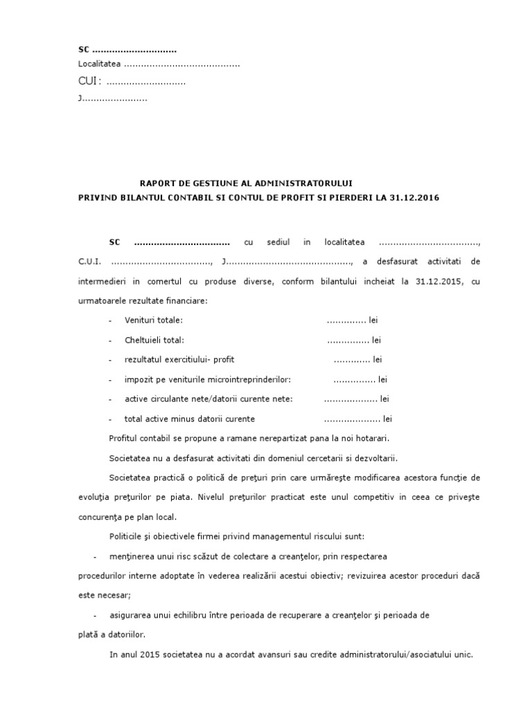 Raport Administrator Bilant 2019 Model
