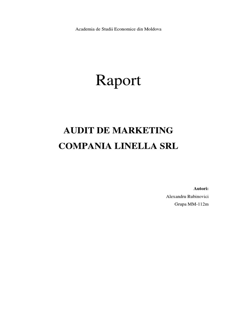 Raport Audit De Marketing Compania Linella Srl