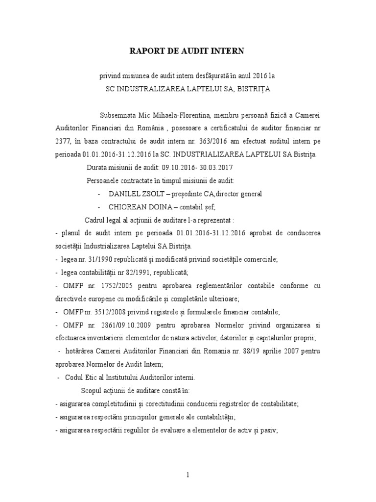 Raport De Audit Intern