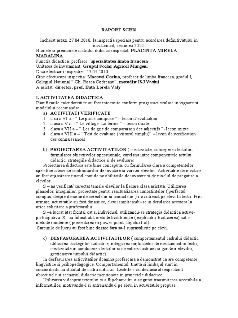 Raport De Activitate Model Tip 1 Doc