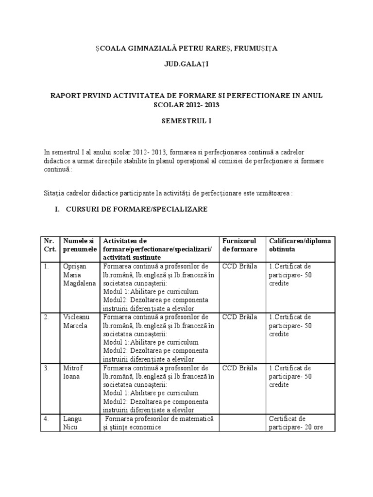 Raport De Activitate Formare Continua