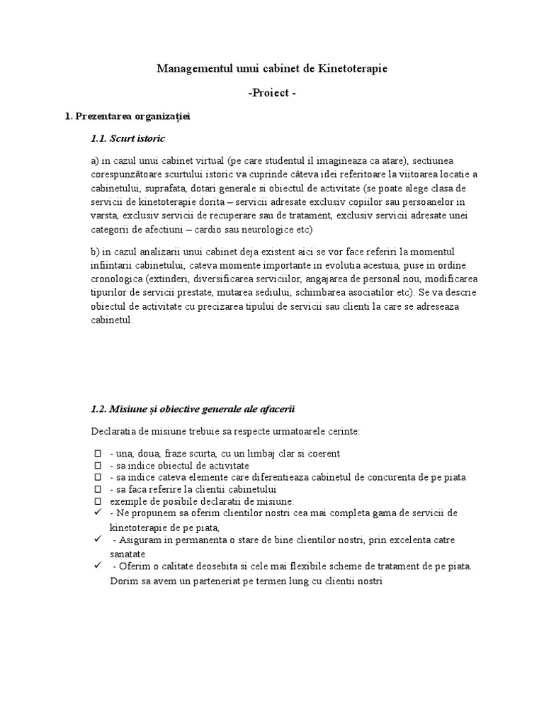 Referat Managementul Unui Cabinet De Kinetoterapie Medicina