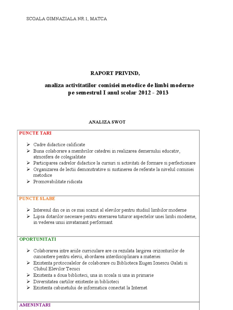 Doc Raport De Activitate Model Tip Pop Cristina Academia Edu