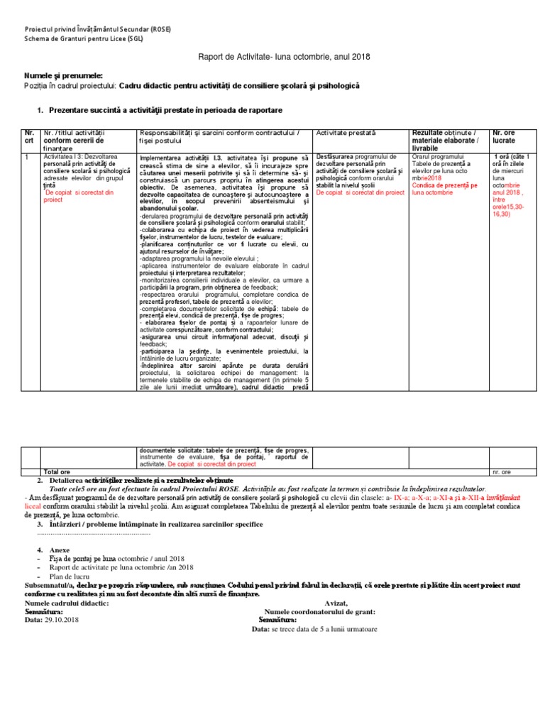 Raport De Activitate Consilier Educativ Pdf Colegiul Nae Ional