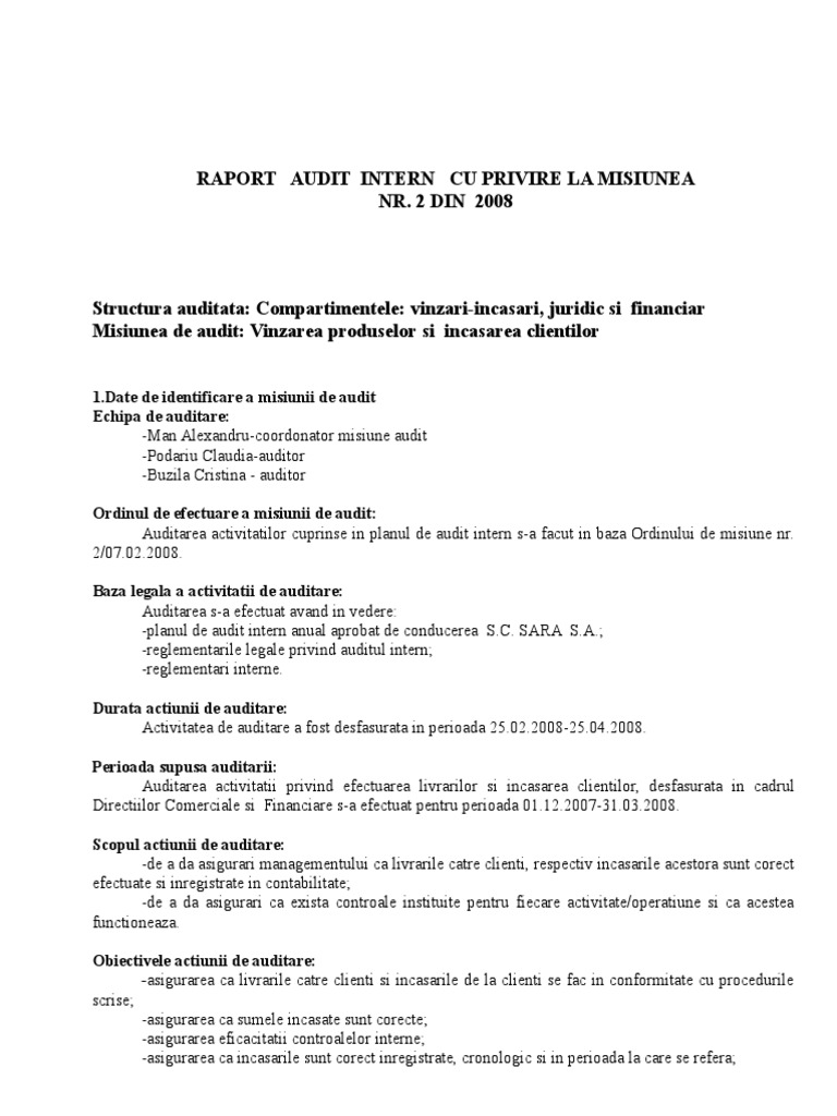 Raport Audit Intern Cu Privire La Misiunea Nr 2 Din 2008