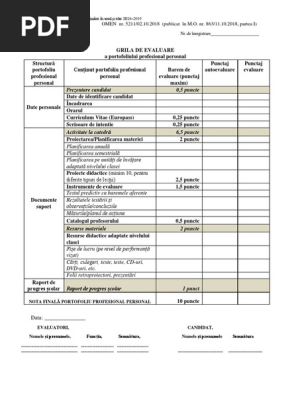 Fisa De Evaluare A Personalului Didactic 2019 Criterii Si Punctaje