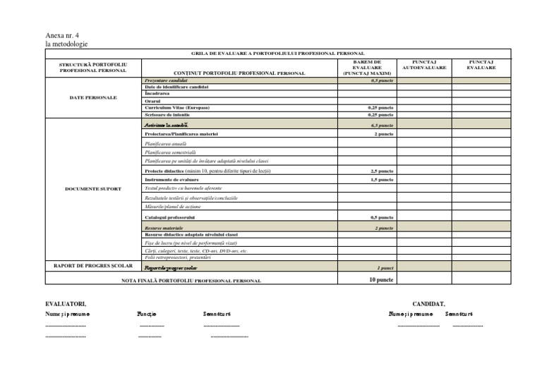 Anexa 4 Grila Evaluare Portofoliu