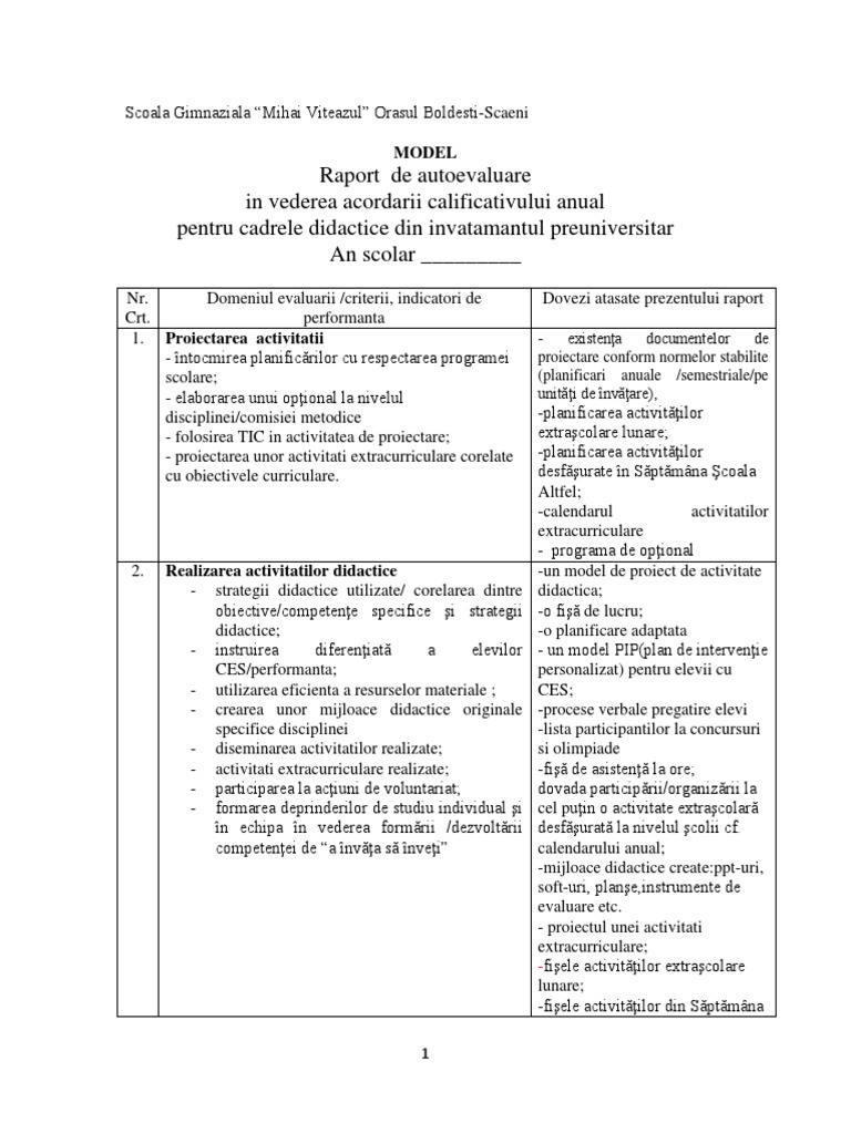 Doc Raportul De Autoevaluare A Activitatii Profesionale In Anul