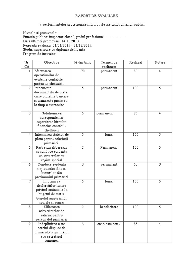 Raport De Evaluare Functionar Public