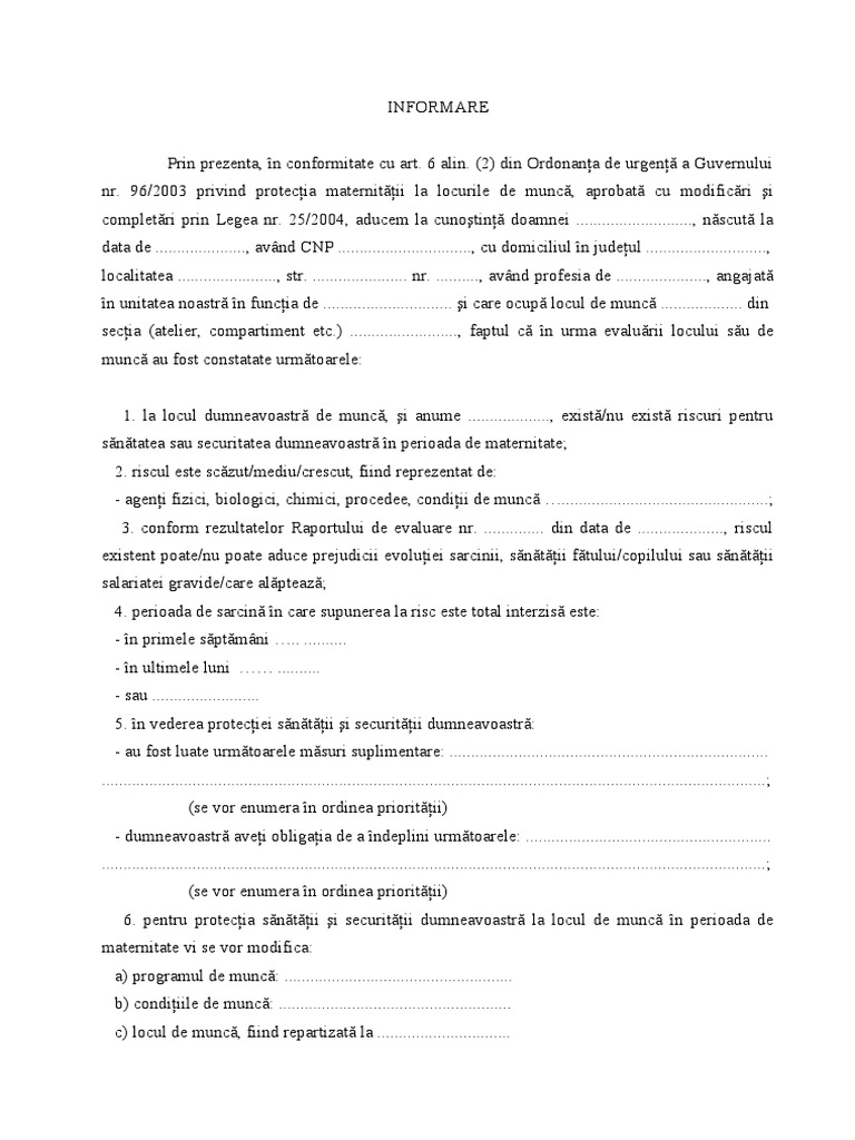4 8 Informare Privind Protectia Maternitatii La Locul De Munca