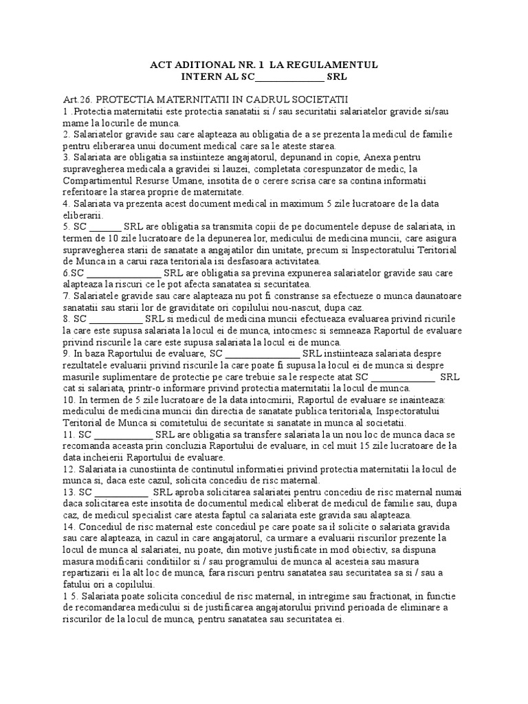 Act Aditional Roi Protectia Maternitatii Discriminare