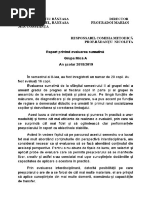 Raport Evaluare Finala Grupa Mica Ionela 2019