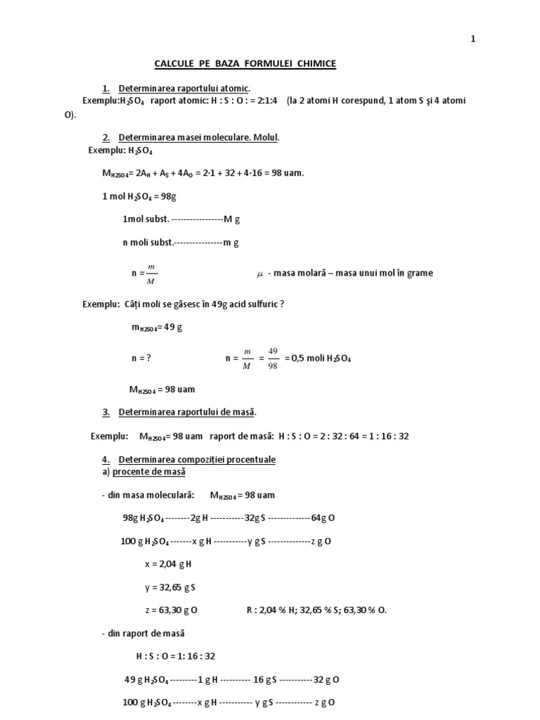 Calcule Pe Baza Formulelor Chimice Clasa A Vii A