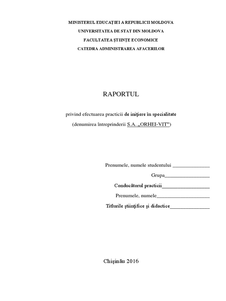 Cuprins Raport De Practica Orhei Vit Docx