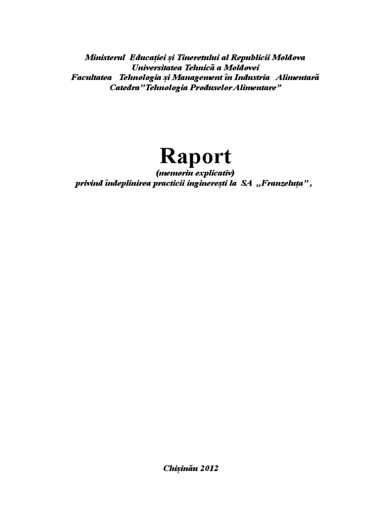 Raport Privind Indeplinirea Practicii Ingineresti La Sa Franzeluta