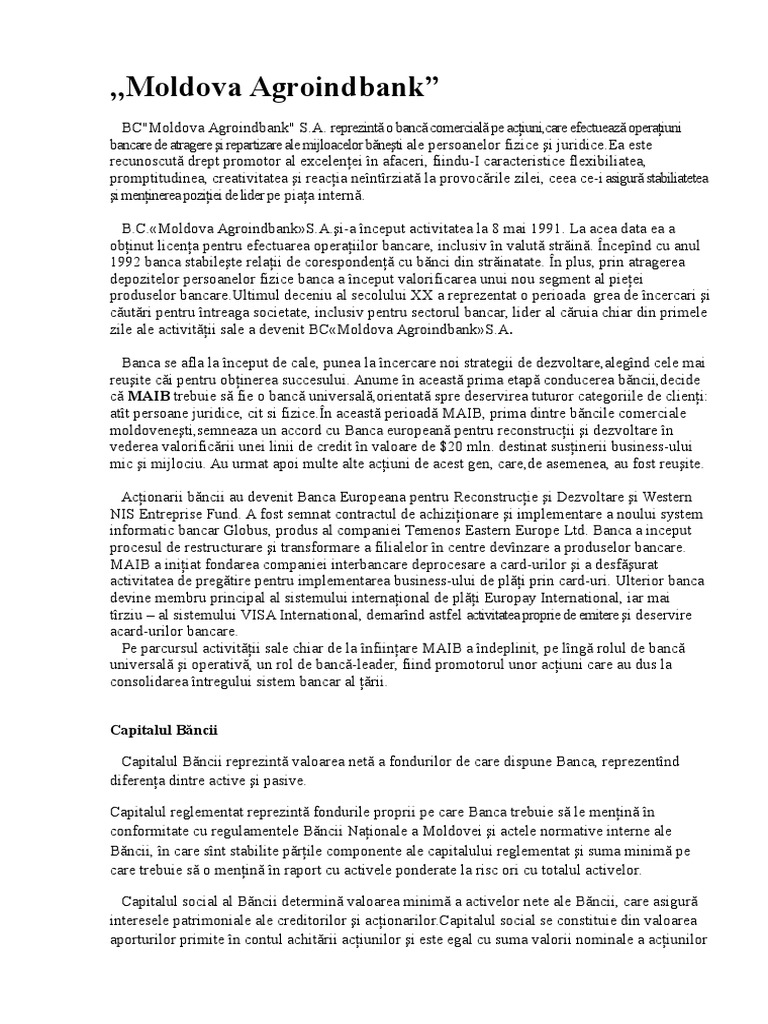 Raport De Practica Moldova Agroindbank Sa Proiecte Ro