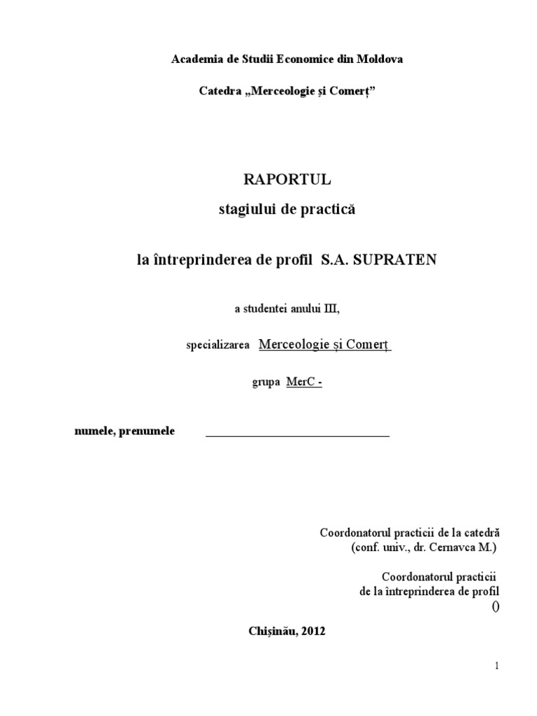 Raport de practica la intreprindere. Pentru a insusi mai profund cunostintele teoretice la specialitatea contabilitate si pentru a obtine deprinderile necesare respective cunostintelor teoretice acumulate in procesul de studii am petrecut practica de diploma la organizatia de contabilitate si audit real business consulting s r l. Mai jos poate fi vizualizat cuprinsul si un extras din document aprox. Stagiul de practică de specialitate poate fi realizat cât la întreprindere atât şi la catedra de profil pentru a atrage scopurile şi obiectivele puse pentru teza de master. Raport de practica la intreprindere srl.