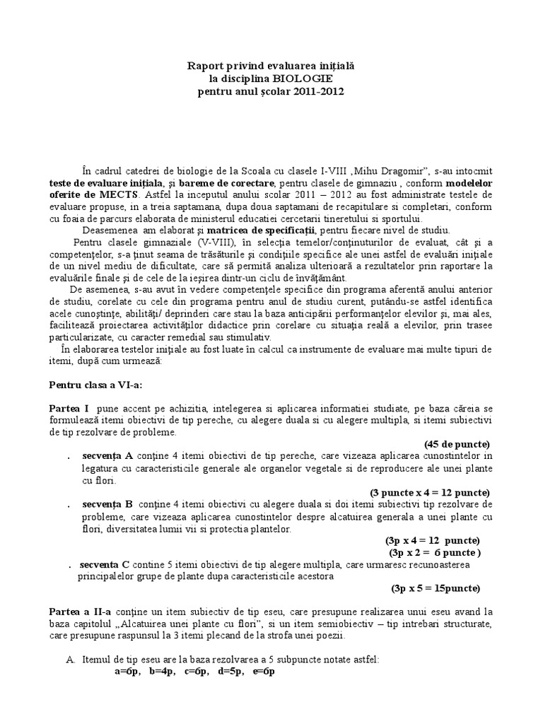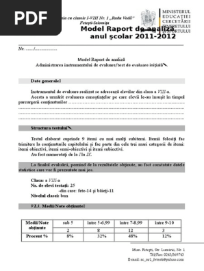 0 Model Raport De Analiza Test De Evaluare Initiala 20112012 Istorie