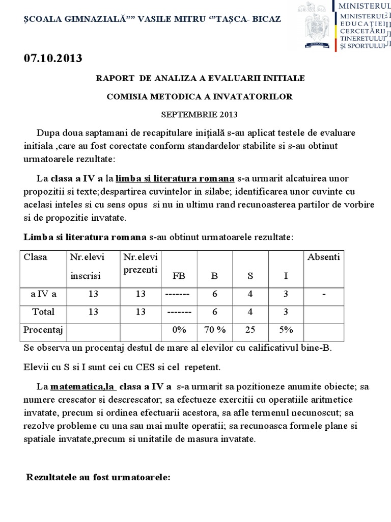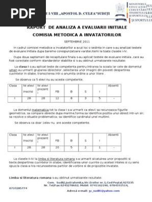 Raport De Analiza A Evaluarii Initiale 2011