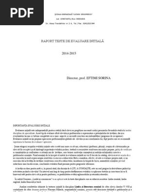 Raport Evaluare Initiala Grupa Combinata Pdf Free Download