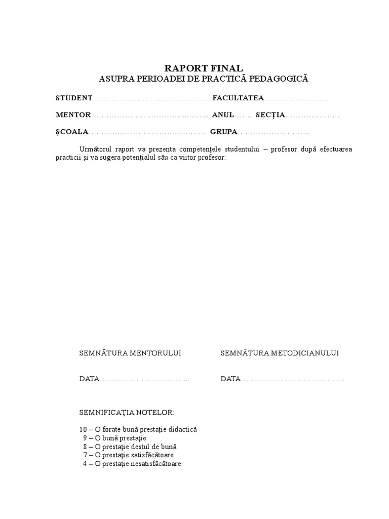 model de raport de practica pedagogica