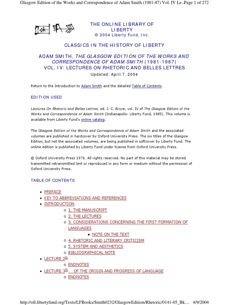 Adam Smith Lectures On Rhetoric And Belles Lettres Rhetoric Adam Smith