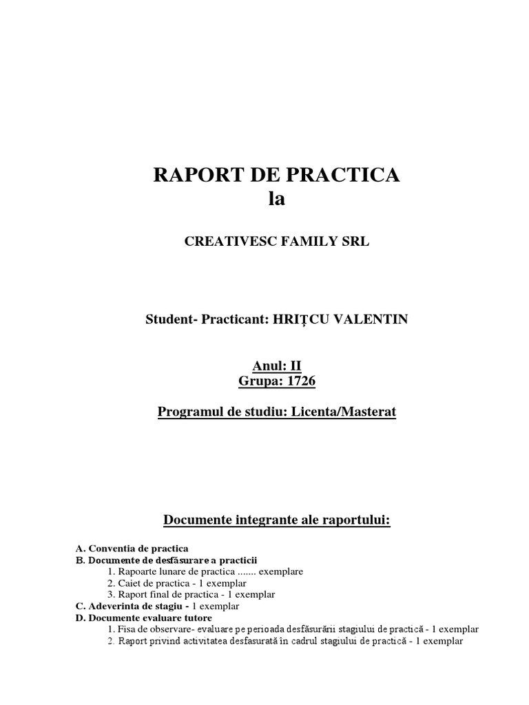 Model Raport Practica 2010