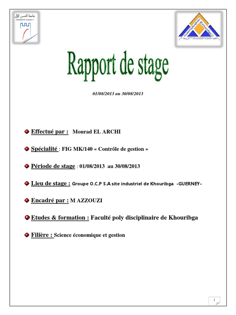 Rapport De Stage Ocp Service Controle De Gestion Business Sciences General Essai Gratuit De 30 Jours Scribd